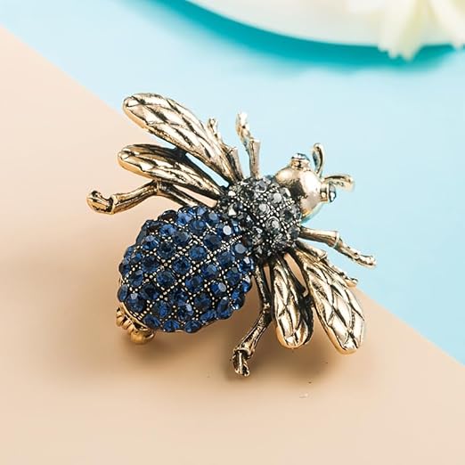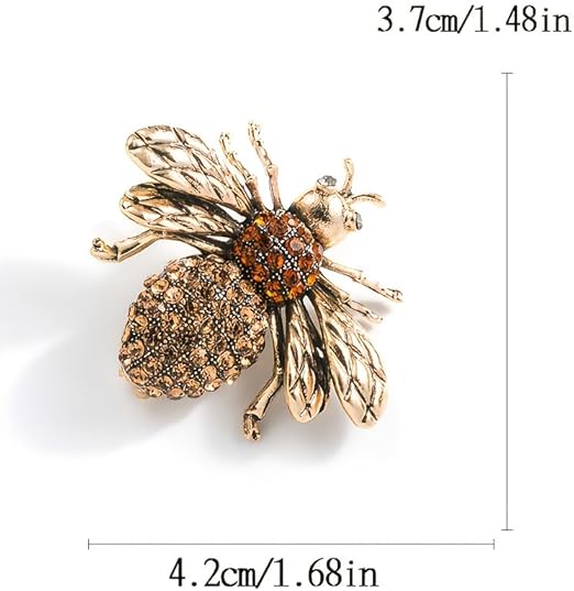 بروش بتصميم نحلة عتيق من ماي سوق ستور، لون ذهبي عتيق، مزين بحجر الراين، دبوس حشرات، 4.2 سم × 3.7 سم