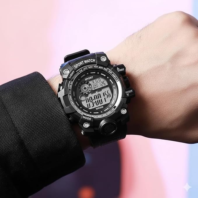 ارفع مستوى معداتك الخارجية مع هذه الساعة الرياضية الرقمية متعددة الوظائف. تم تصميم هذه الساعة خصيصًا لأولئك الذين يعيشون أسلوب حياة نشط، حيث تجمع بين المظهر القوي المستوحى من الطراز العسكري ودقة التكنولوجيا الرقمية الحديثة. سواء كنت تمارس رياضة المشي لمسافات طويلة، أو تتدرب في صالة الألعاب الرياضية، أو تتجه إلى المكتب، فإن تصميمه الجريء يقدم بيانًا قويًا. تم تصميمه ليدوم طويلاً مع التركيز على المتانة، حيث يحمي الغلاف المقاوم للصدمات الحركة الداخلية من الصدمات. الكريستال الزجاجي المعدني مقاوم للخدش، مما يضمن بقاء شاشتك واضحة حتى بعد الاستخدام المكثف. الدقة في متناول يدك لا تفوت أي لحظة مع وظائف ساعة الإيقاف والمنبه المدمجة. تعرض الواجهة سهلة القراءة يوم الأسبوع والتاريخ والوقت في نفس الوقت. يعد الانتقال من النهار إلى الليل أمرًا سلسًا بفضل الإضاءة الخلفية LED النابضة بالحياة. المواصفات: العرض: علبة رقمية المادة: راتنج عالي القوة مادة السوار: مطاط بولي يوريثين صديق للبشرة