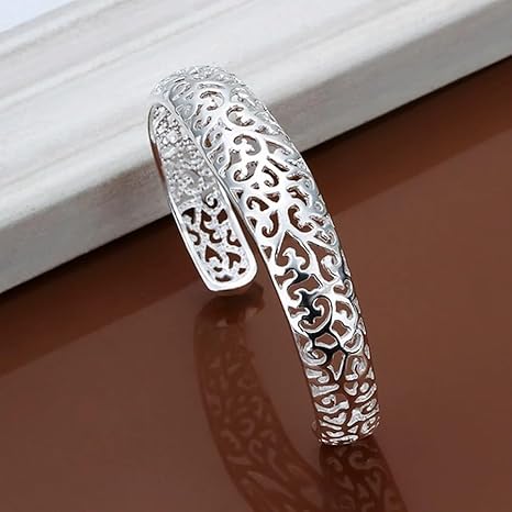 يجمع هذا السوار المفتوح الرائع المصنوع من الفضة الإسترلينية عيار 925 بين الأناقة الخالدة والأسلوب المعاصر، مما يجعله إكسسوارًا مثاليًا للنساء والفتيات اللواتي يقدرن المجوهرات عالية الجودة. صُنعت هذه القطعة من الفضة الإسترلينية الأصلية عيار 925، وتتميز بتصميم دائري مميز يبرز سحر الطراز القديم مع الحفاظ على جاذبية الموضة الحديثة. يسمح نمط السوار المفتوح بسهولة الارتداء والإزالة، مع توفير ملاءمة مريحة لمختلف أحجام المعصم. يخلق التصميم الدائري تدفقًا مستمرًا من الأناقة حول المعصم، مما يجعله مناسبًا للارتداء اليومي غير الرسمي والمناسبات الخاصة. يُعد هذا السوار متعدد الاستخدامات بمثابة هدية مثالية لأعياد الميلاد أو الذكرى السنوية أو الاحتفالات، حيث يُظهر تقديرك لشخص مميز. يضمن البناء المصنوع من الفضة الإسترلينية المتانة ويحافظ على مظهره اللامع مع العناية المناسبة. سواء تم ارتداؤها بمفردها كقطعة مميزة أو مع أساور أخرى للحصول على مظهر متعدد الطبقات، فإن هذا السوار الساحر يضيف لمسة من الرقي إلى أي زي. التصميم المستوحى من الطراز القديم يجذب أولئك الذين يقدرون الجماليات الكلاسيكية مع لمسة عصرية.