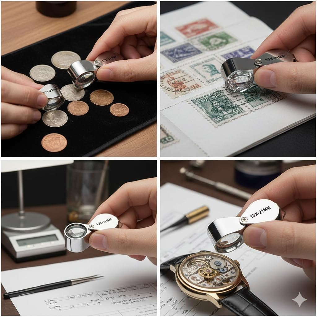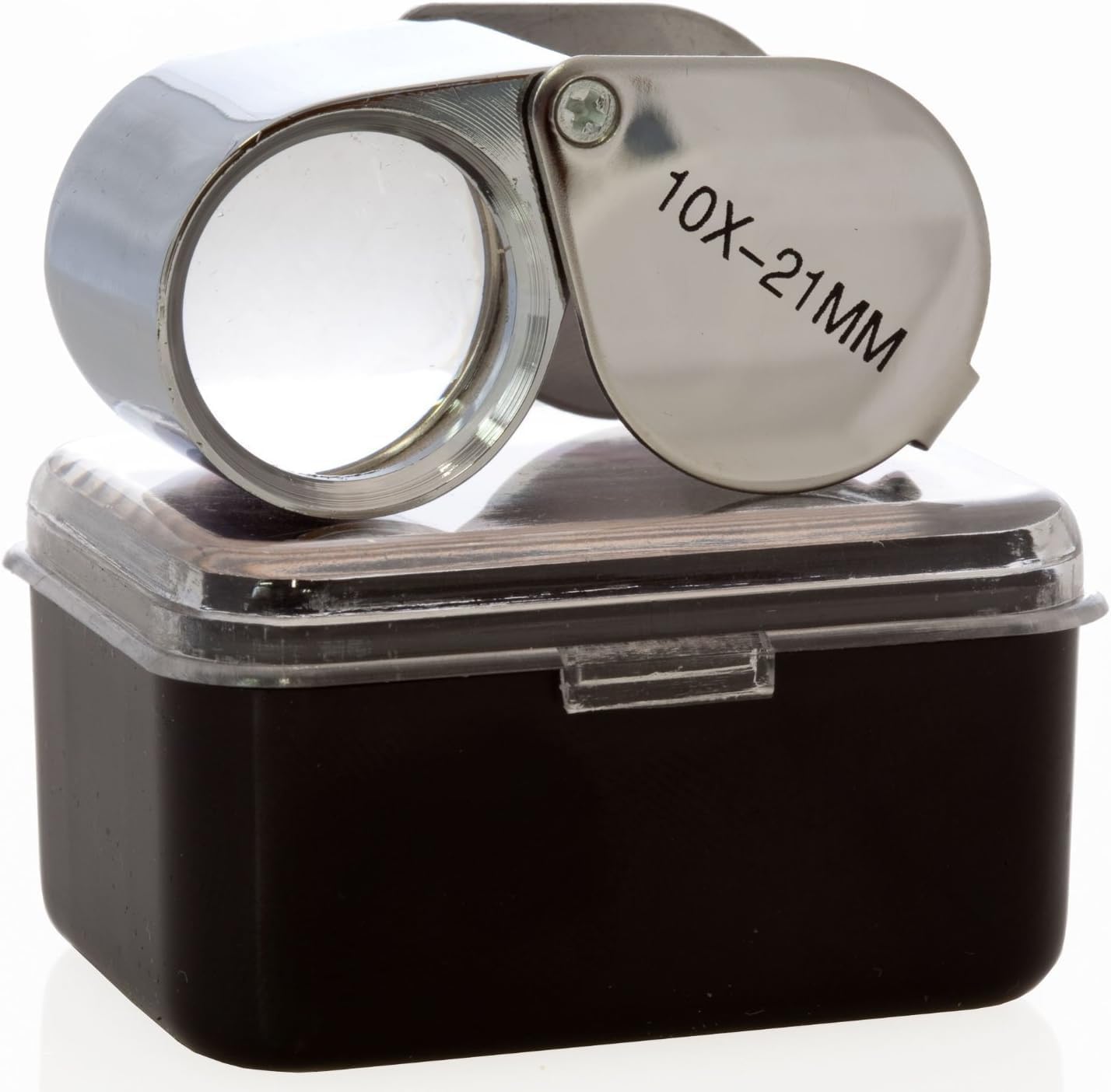 عدسة مكبرة احترافية للمجوهرات مصنوعة بالكامل من المعدن – عدسة عالية الوضوح للأحجار الكريمة والماس والعملات المعدنية والطوابع وإصلاح الساعات الفضية (10×21 مم)