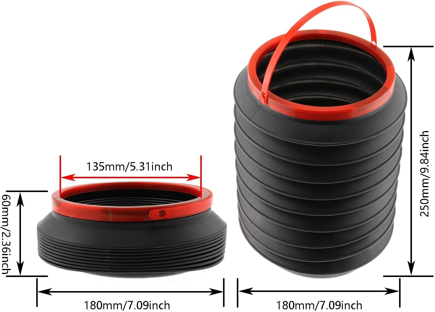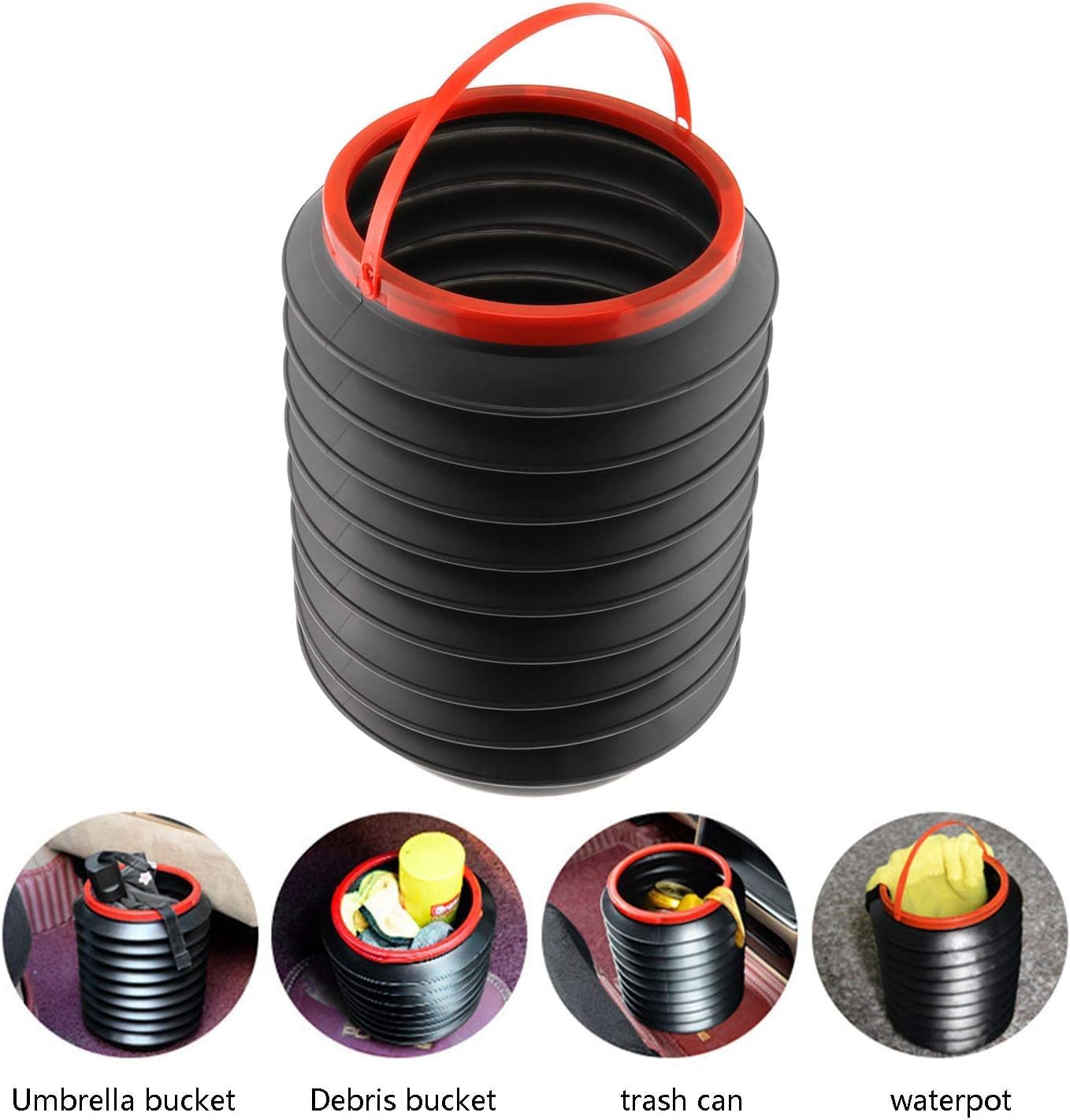 (قطعتان) سلة مهملات قابلة للطي للسيارة، أسود وأحمر، دلو بلاستيكي قابل للطي بمقبض، سعة 4.5 لتر، ارتفاع 25 سم، سلة مهملات محمولة للسيارة والمكتب وغرفة النوم والمطابخ