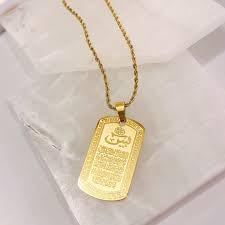 قلادة بخط عربي إسلامي، مصنوعة من الفولاذ المقاوم للصدأ 304، ذهبية اللون، مجوهرات إسلامية بخط عربي، إكسسوار ديني للرجال والنساء، هدية رمضان وعيد الفطر