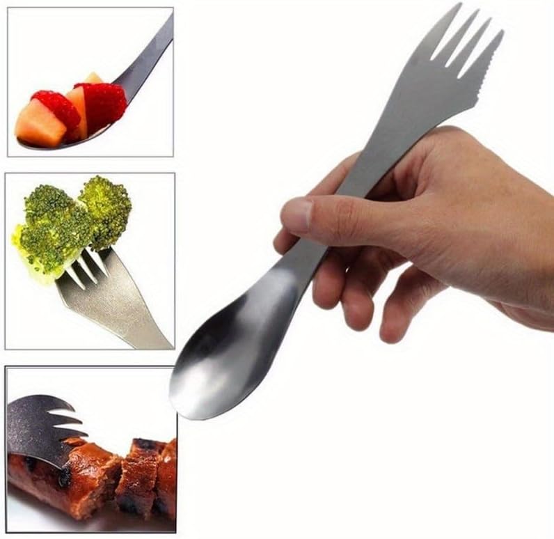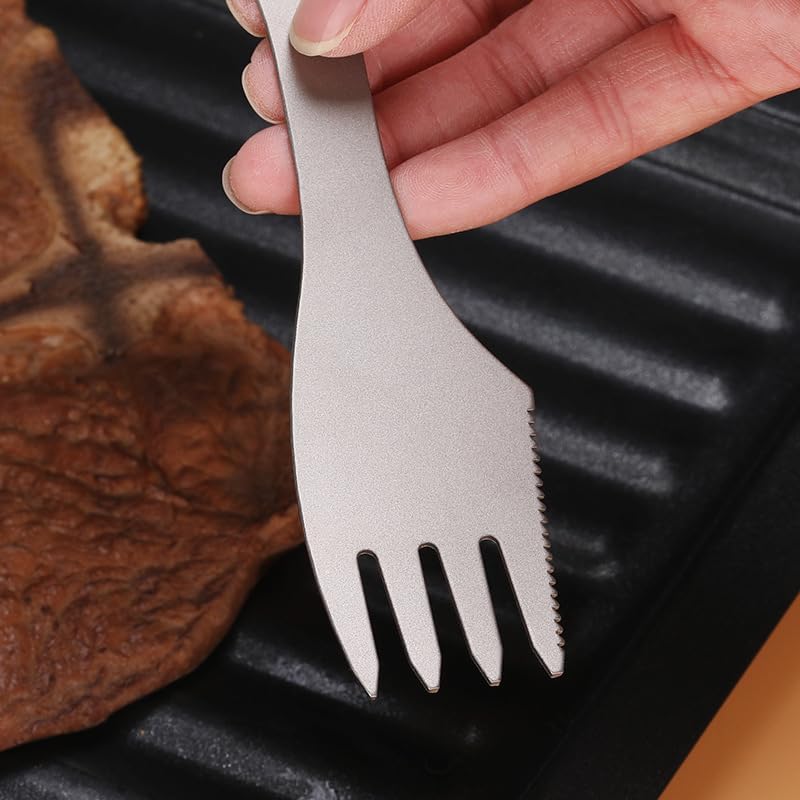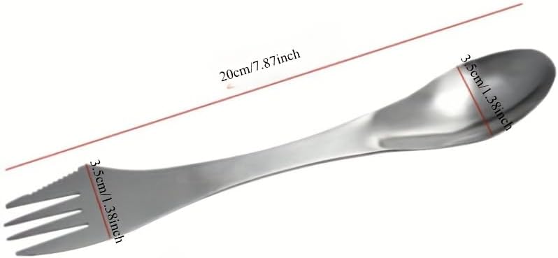 تجمع شوكة التيتانيوم المبتكرة 3 في 1 بين الشوكة والملعقة والسكين في أداة واحدة مدمجة، مما يجعلها الرفيق المثالي للمغامرات الخارجية ورحلات التخييم والسفر. يبلغ طول قطعة أدوات المائدة متعددة الوظائف هذه 20 سم، وهي مصممة لتوفير المساحة في حقيبة ظهرك مع توفير جميع أدوات الأكل الأساسية التي تحتاجها. هذه الشوكة مصنوعة من التيتانيوم المتين، وهي خفيفة الوزن ولكنها قوية بشكل لا يصدق، ومقاومة للتآكل، ومصممة لتحمل قسوة الاستخدام الخارجي. تتميز الشوكة بأربعة أسنان قوية لطحن الطعام بالرمح، بينما توفر نهاية الملعقة وعاءً واسعًا للحساء واليخنات. تعمل الحافة المسننة على طول أحد جانبي الشوكة كسكين، مما يسمح لك بتقطيع الأطعمة المختلفة بسهولة. يمنحه اللون الفضي الأنيق مظهرًا عصريًا واحترافيًا يبدو رائعًا سواء كنت تتناول الطعام في الهواء الطلق أو في المخيم الخاص بك. هذه الأداة متعددة الاستخدامات تلغي الحاجة إلى حمل قطع متعددة من أدوات المائدة، مما يجعلها إضافة أساسية لمجموعة أدواتك الخارجية. مثالي للمتنزهين والمخيمين وحاملي حقائب الظهر وأي شخص يقدر الحلول العملية الموفرة للمساحة لتناول الطعام في الهواء الطلق.