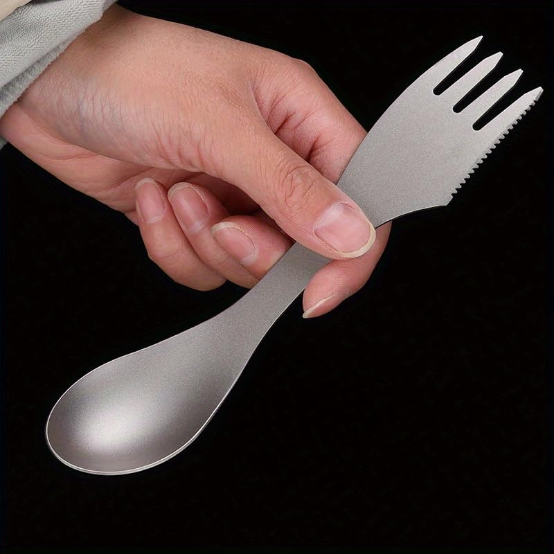 طقم شوكة وملعقة وسكين تيتانيوم 3 في 1، متعدد الوظائف، طول 20 سم، أدوات مائدة للتخييم والرحلات