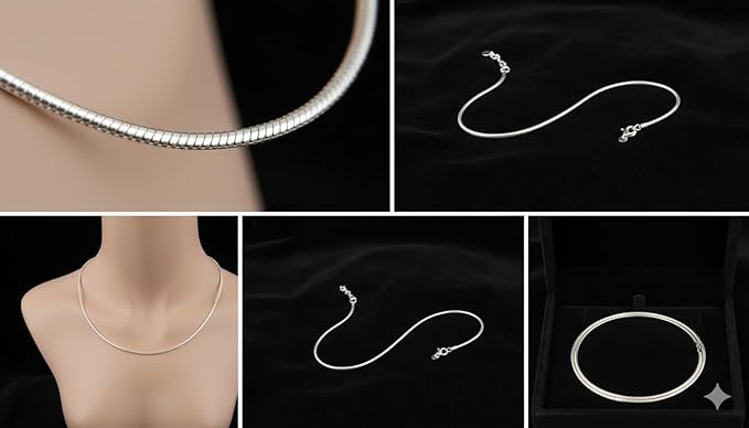 قلادة سلسلة ثعبان من سبيكة فضية للرجال والنساء – 50 سم (20 بوصة) سلسلة مرنة ذات حلقات دائرية – لمسة نهائية أنيقة ولامعة