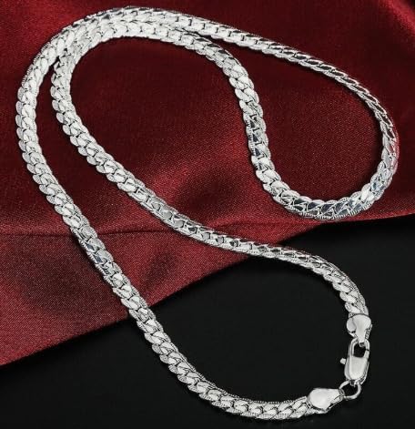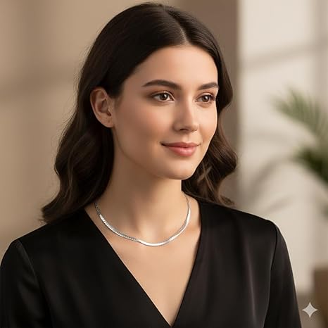 قلادة سلسلة فضية مسطحة للجنسين – طول كلاسيكي 50 سم – لمسة نهائية مصقولة أنيقة