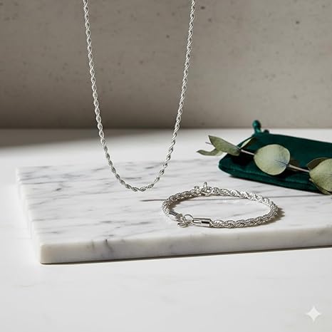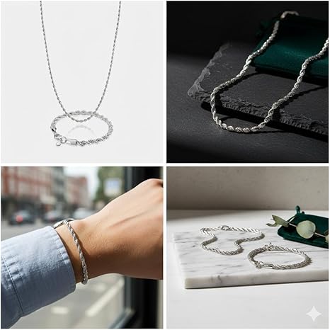 قلادة من سبيكة فضية للرجال والنساء – سلسلة مرنة بطول 50 سم (20 بوصة) – سوار أنيق بلمسة نهائية مصقولة للغاية: طول 20 سم