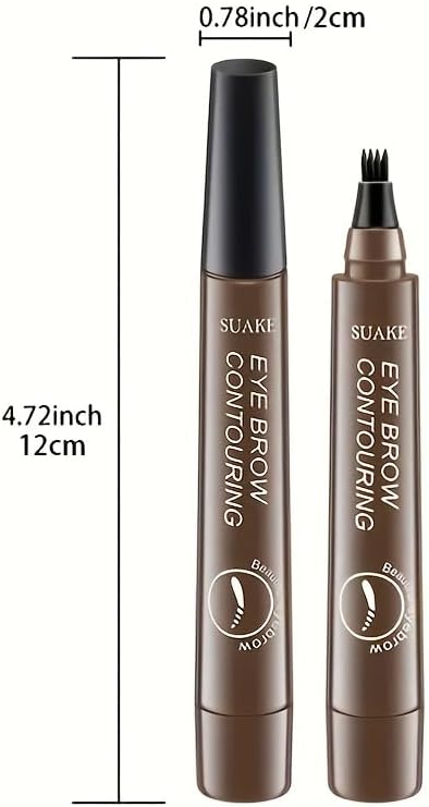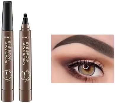 قلم حواجب سائل مقاوم للماء، يدوم طويلاً، لون بني داكن مكياج نسائي بأربعة رؤوس