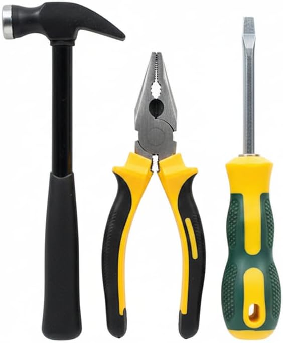 مجموعة أدوات منزلية أساسية ٣ في ١ | مطرقة مخلبية، كماشة طويلة الأنف، مفك براغي مسطح | أدوات يدوية متينة