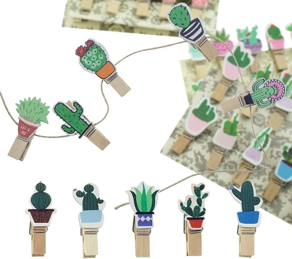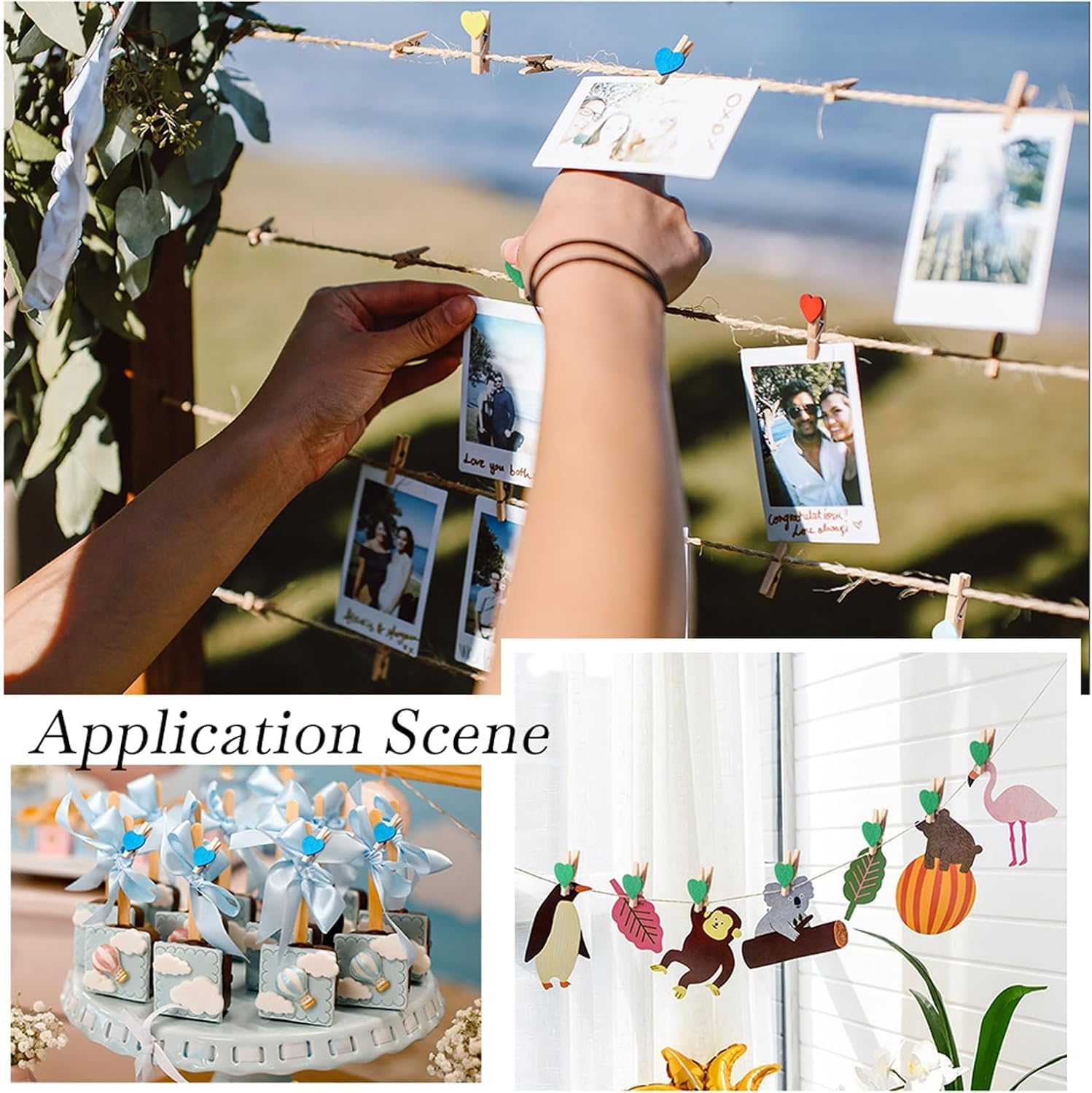 مجموعة مشابك صور خشبية لطيفة على شكل قطة محبة مع خيط – مشابك زخرفية للصور والملاحظات والأعمال اليدوية – لون عشوائي