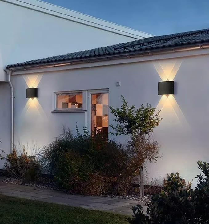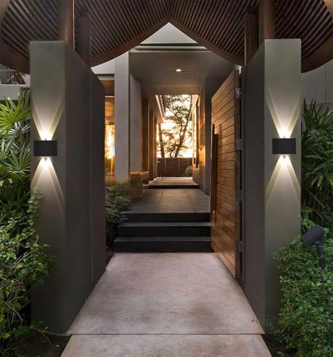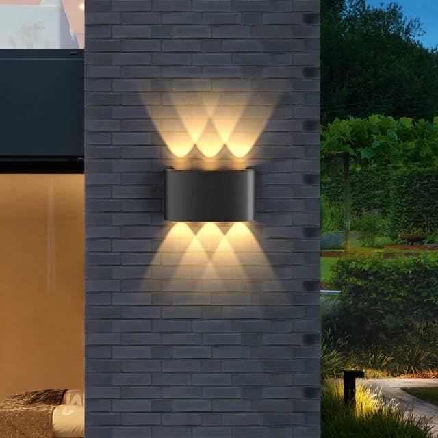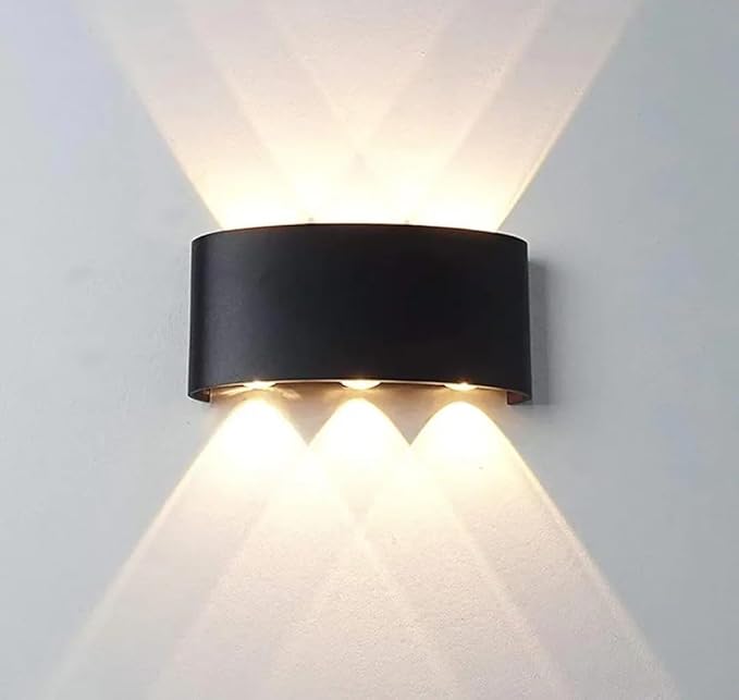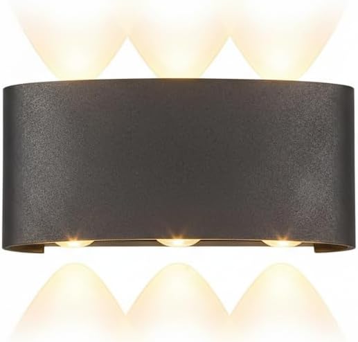 مصباح جداري عصري LED أسود دافئ بإضاءة دافئة 6 واط، برأسين، إضاءة علوية وسفلية، مناسب للحدائق، مقاس 16.5 × 7.5