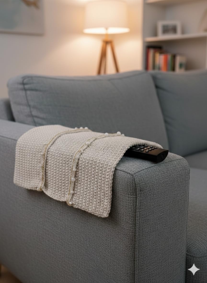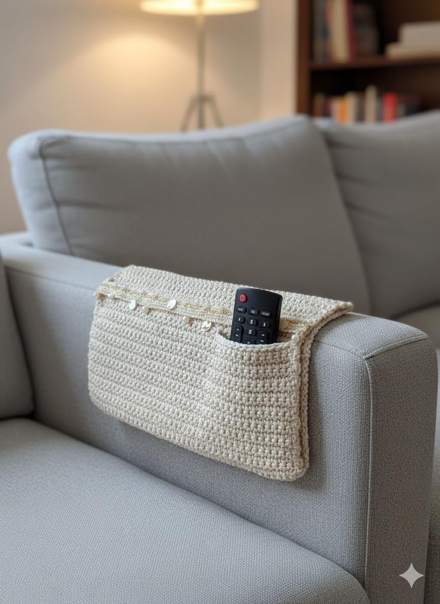 قم بترقية مساحة المعيشة الخاصة بك بمزيج من السحر العتيق والوظائف الحديثة. منظم مسند الذراع المصنوع يدويًا بالكروشيه الخاص بنا هو أكثر من مجرد حل للتخزين؛ إنه قطعة مميزة. صُنعت هذه العلبة بأنماط محبوكة معقدة ومزينة بتفاصيل لؤلؤية دقيقة، وتضفي جمالية مريحة “بوهو أنيقة” على أي أريكة أو كرسي بذراعين. هل سئمت من فقدان جهاز التحكم عن بعد بين الوسائد؟ يحافظ هذا المنظم على أغراضك الأساسية —أجهزة التحكم عن بعد، والهواتف الذكية، والنظارات، أو المجلات— في متناول يدك مع حماية أثاثك من التآكل والتلف.
