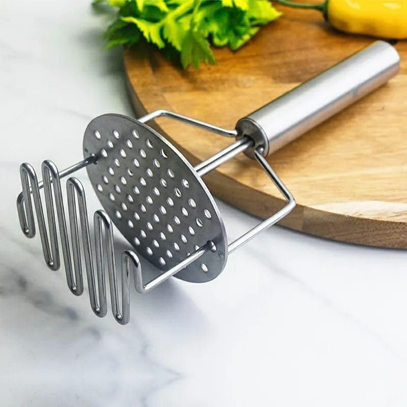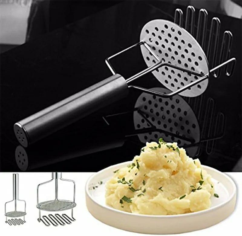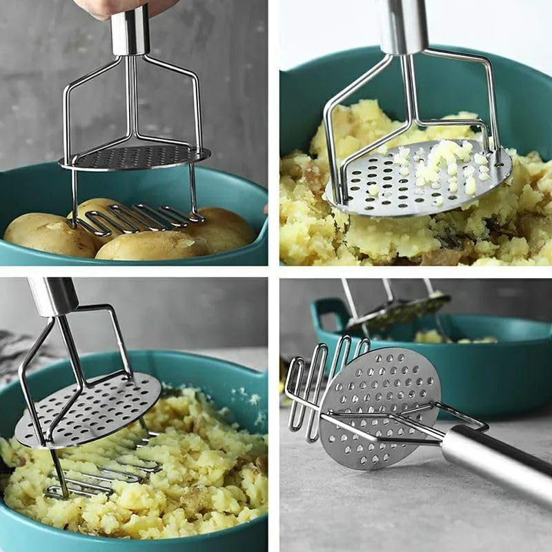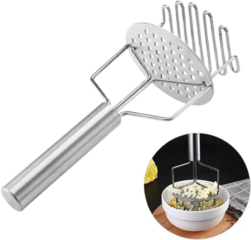 هراسة بطاطس مزدوجة، أداة يدوية، مصفاة آمنة للطعام، أدوات مطبخ مفيدة – ستانلس ستيل – 24.5 سم