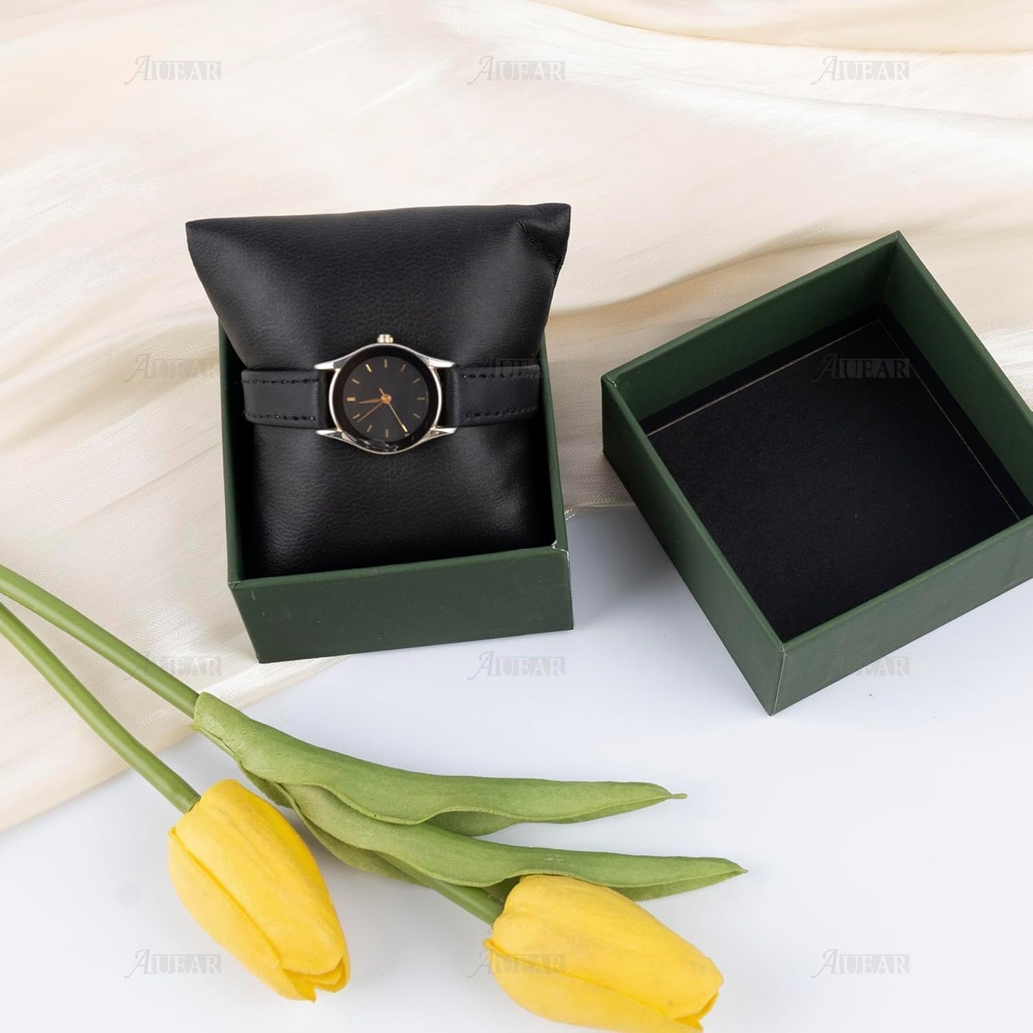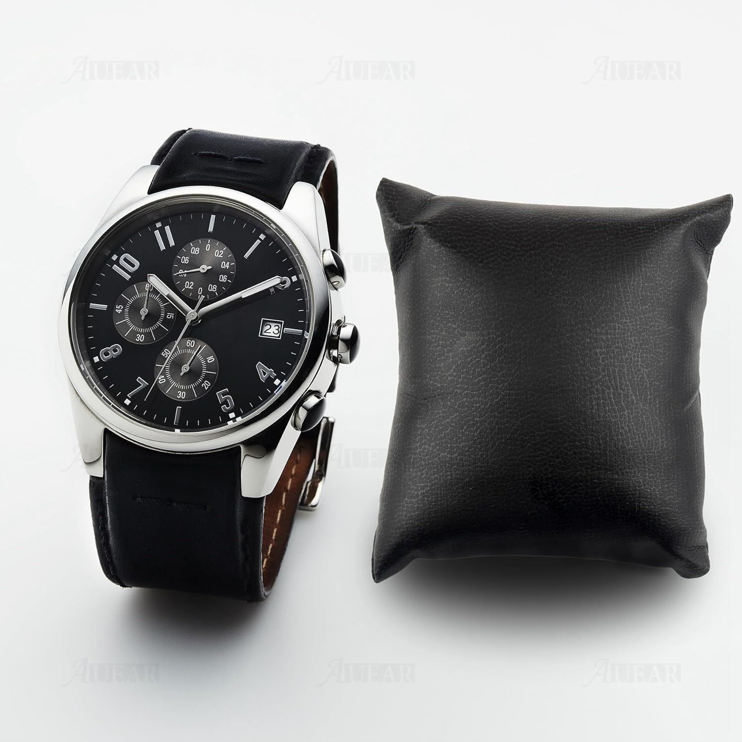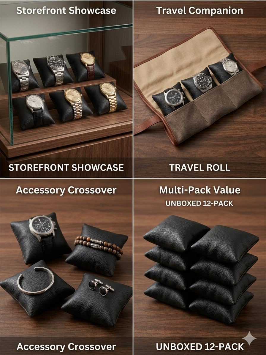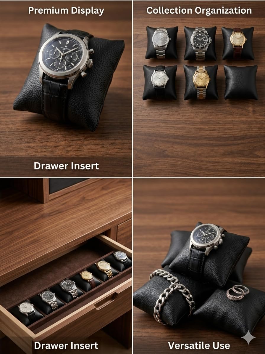 وسائد ساعات فاخرة للعرض والتخزين – عبوة من 12 وسادة مجوهرات من الجلد الصناعي الأسود لصناديق الساعات، والحافظات، والأدراج