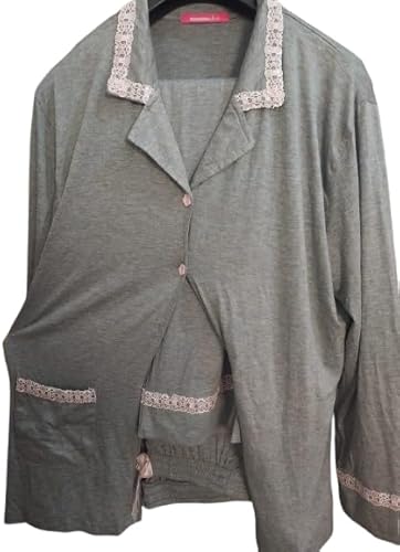 استمتع براحة لا مثيل لها مع مجموعة البيجامات النسائية الأنيقة هذه. تتضمن المجموعة مجموعة مكونة من قطعتين: بلوزة بأكمام طويلة وبنطلون مريح. يتميز الجزء العلوي بتصميم كلاسيكي مع ياقة رقيقة مزينة بالدانتيل وزر أمامي على شكل زهرة، مما يضيف لمسة أنثوية ساحرة. القماش ناعم ولطيف على البشرة، مما يجعله مثاليًا للنوم والاسترخاء في المنزل. لونه الرمادي الهادئ يجعله خيارًا متعدد الاستخدامات ومناسبًا لجميع الأذواق. طقم بيجامة نسائي مريح مكون من قطعتين | ملابس نوم قطنية مع ياقة من الدانتيل وتفاصيل زهور.