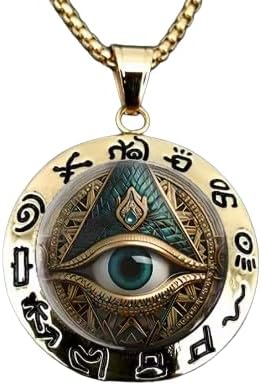 قلادة أنيقة على شكل عين مصرية مع سلسلة من سبائك ذهبية اللون – تصميم هيروغليفي معقد، مثالي لعيد الهالوين والكريسماس وأعياد الميلاد-B0G4JT5JXF