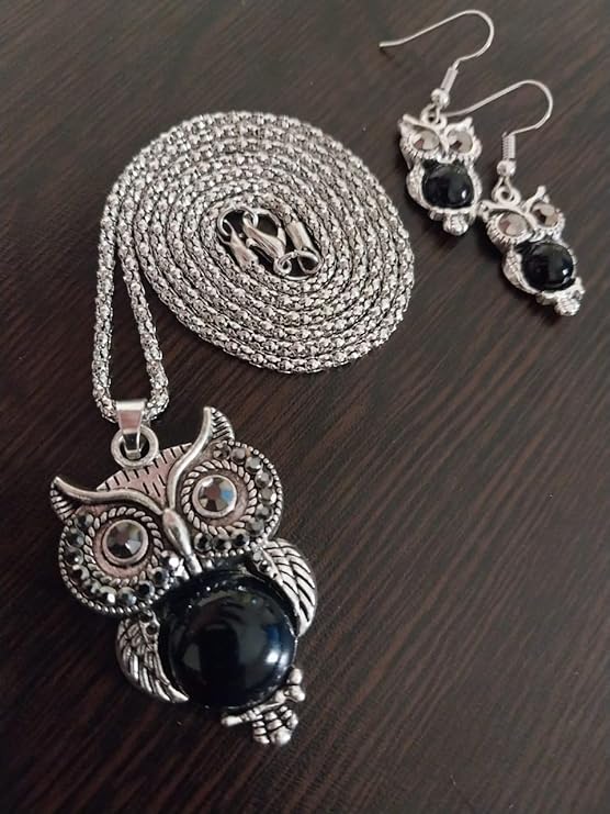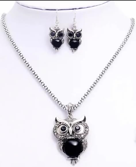 طقم مجوهرات بومة أنيقة للنساء – قلادة وأقراط بأحجار سوداء 1 قطعة-B0FPMD9BCT