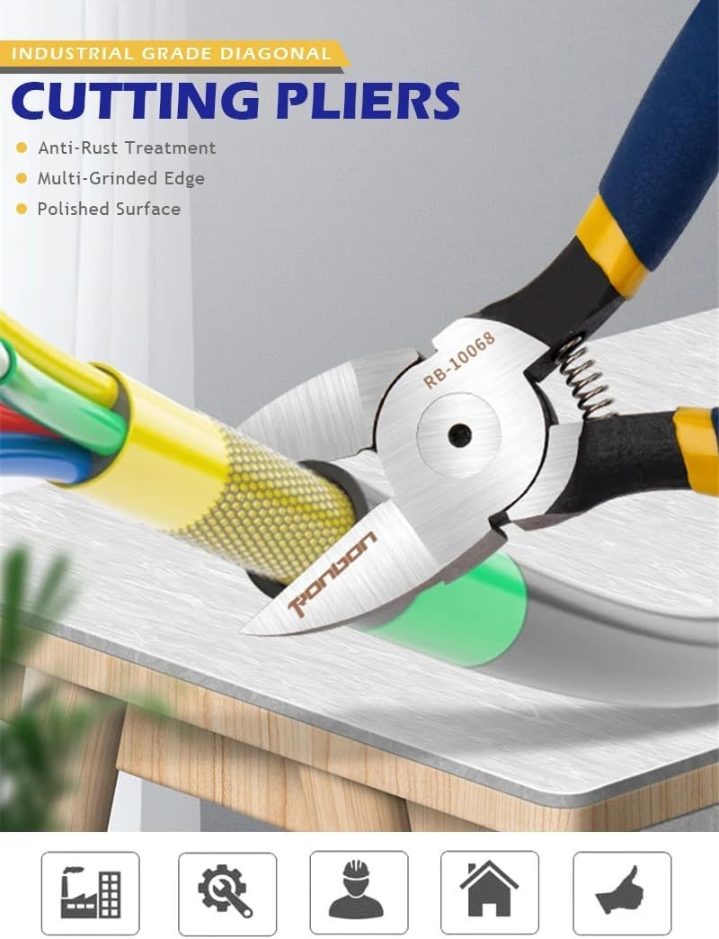 These 5/6 inch diagonal cutting pliers are a handy, multi-functional tool perfect for electricians, DIY enthusiasts, and anyone needing to strip or cut wires.