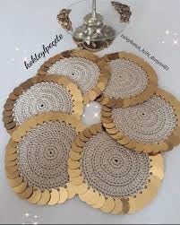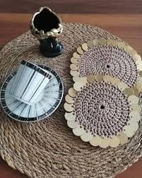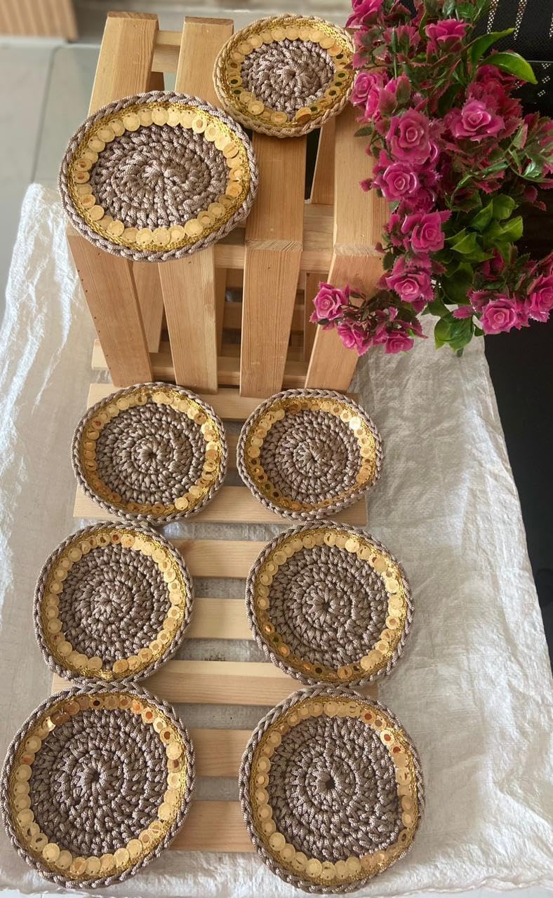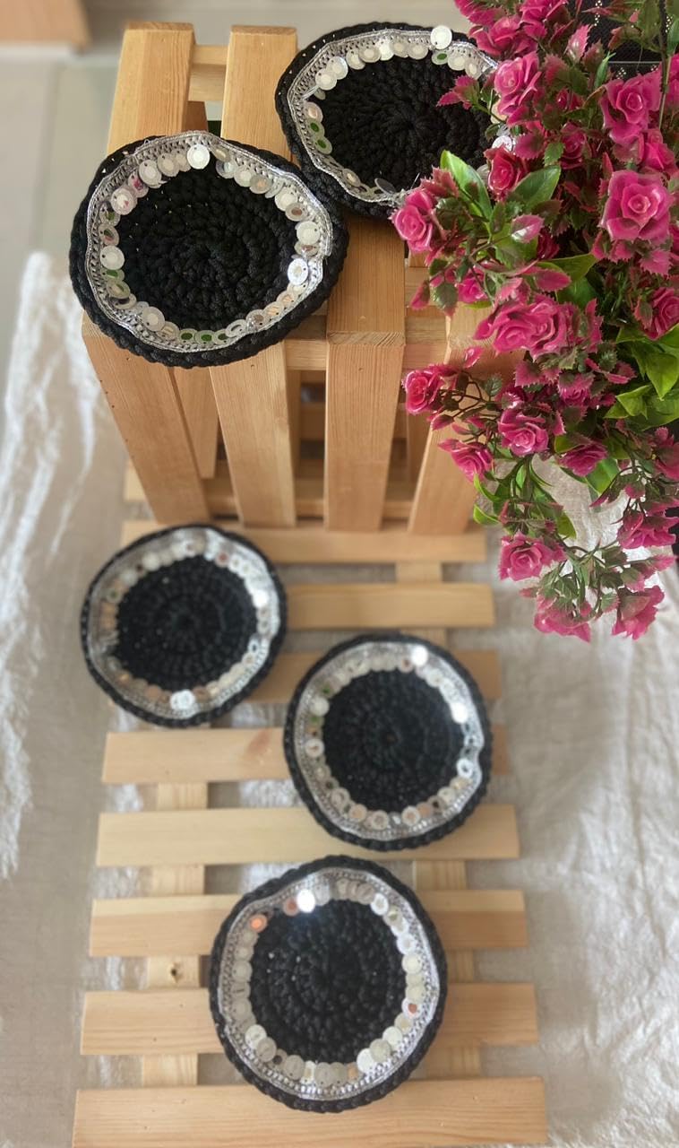 MySouq-Store Handmade Crochet Coaster plates for cubs and mug تشكيلة متنوعه من قواعد الاكواب والمج مصنوعة من الكورشية عدد خمسة قطع مقاسات مختلفه