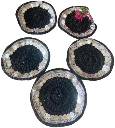 5 Pcs Handmade Crochet Coaster plates for cubs and mug عدد 5 قطع تشكيلة متنوعه من قواعد الاكواب والمج مصنوعة من الكورشية-B0FKBM5WC2