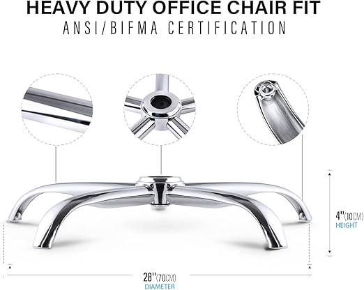 office chair base, 28 inch office chair base replacement with reinforced metal legs (2200lbs), chair bottom part for most chairs, cylinder and caster sockets (silver)-B0FLVNSNHQ