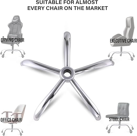 Product Description: Are you tired of your office chair’s worn-out or broken base? We present the MySouqEg Office Chair Base, the perfect solution to bring your favorite chair back to life. This reinforced metal replacement base is more than just a spare part; it’s an upgrade that provides you with unmatched durability and a load capacity of up to 2200 lbs. This base is intelligently designed to be compatible with most office chairs on the market, and it includes everything you need for immediate installation. Don’t worry about chair wobbling or instability; thanks to its enhanced engineering design, you will enjoy complete stability during long working hours. The installation process is very simple, allowing you to quickly and efficiently reuse your old chair. In addition to its excellent functional performance, the elegant silver color adds a touch of aesthetics and professionalism to your work environment. Don’t let your favorite office chair go to waste. Get the MySouqEg Office Chair Replacement Base today and enjoy a comfortable and safe seating experience that lasts! Product Details & Specifications: Brand: MySouqEg Material: Reinforced Metal Color: Silver Size: 28 Inch Weight Capacity: 2200 lbs (998 kg) Use: Replacement part for office chair base Package Contents: 1 x Chair base, 1 x Cylinder, Caster sockets